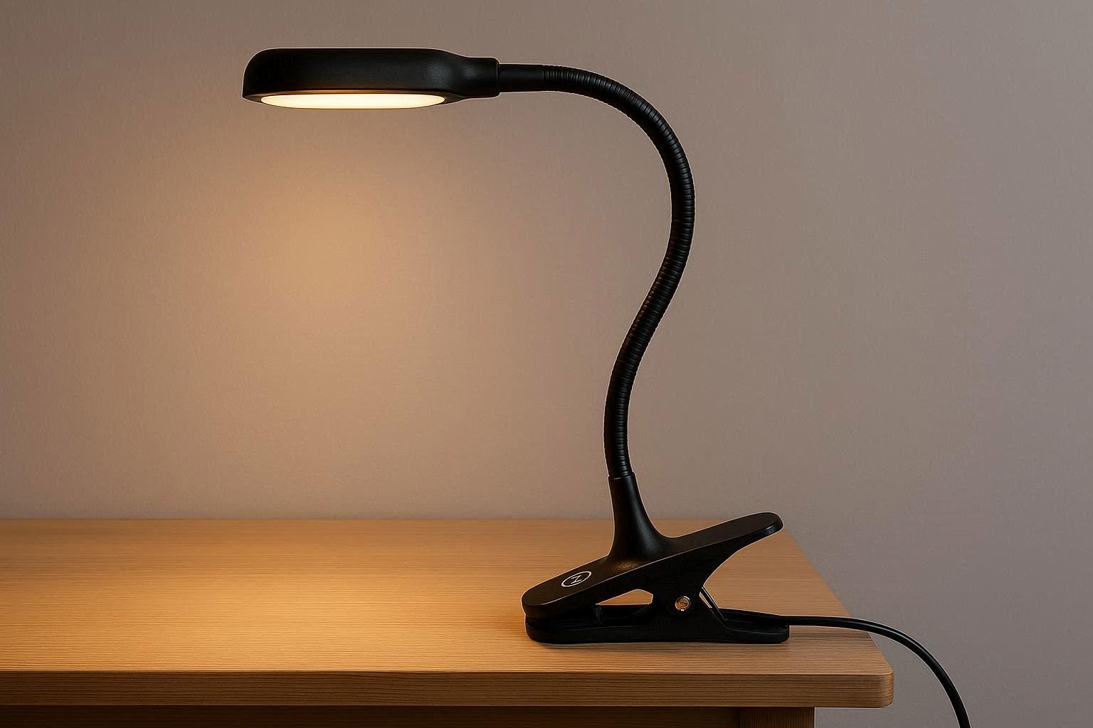 This ultra-flexible lamp features a sturdy metal gooseneck that can be bent and twisted to any position, paired with a strong spring-loaded clip. The clip can attach to desks, headboards, shelves, or even a music stand, with a maximum grip thickness of 2 inches. The lamp head houses bright, dimmable LEDs with a stepless dimming ring that allows infinitely variable brightness adjustment from 10% to 100%.