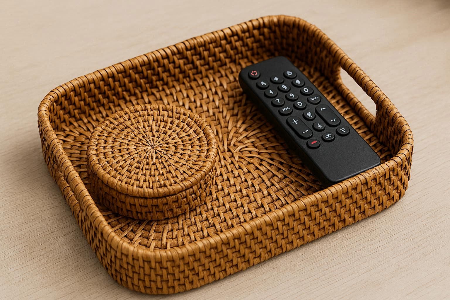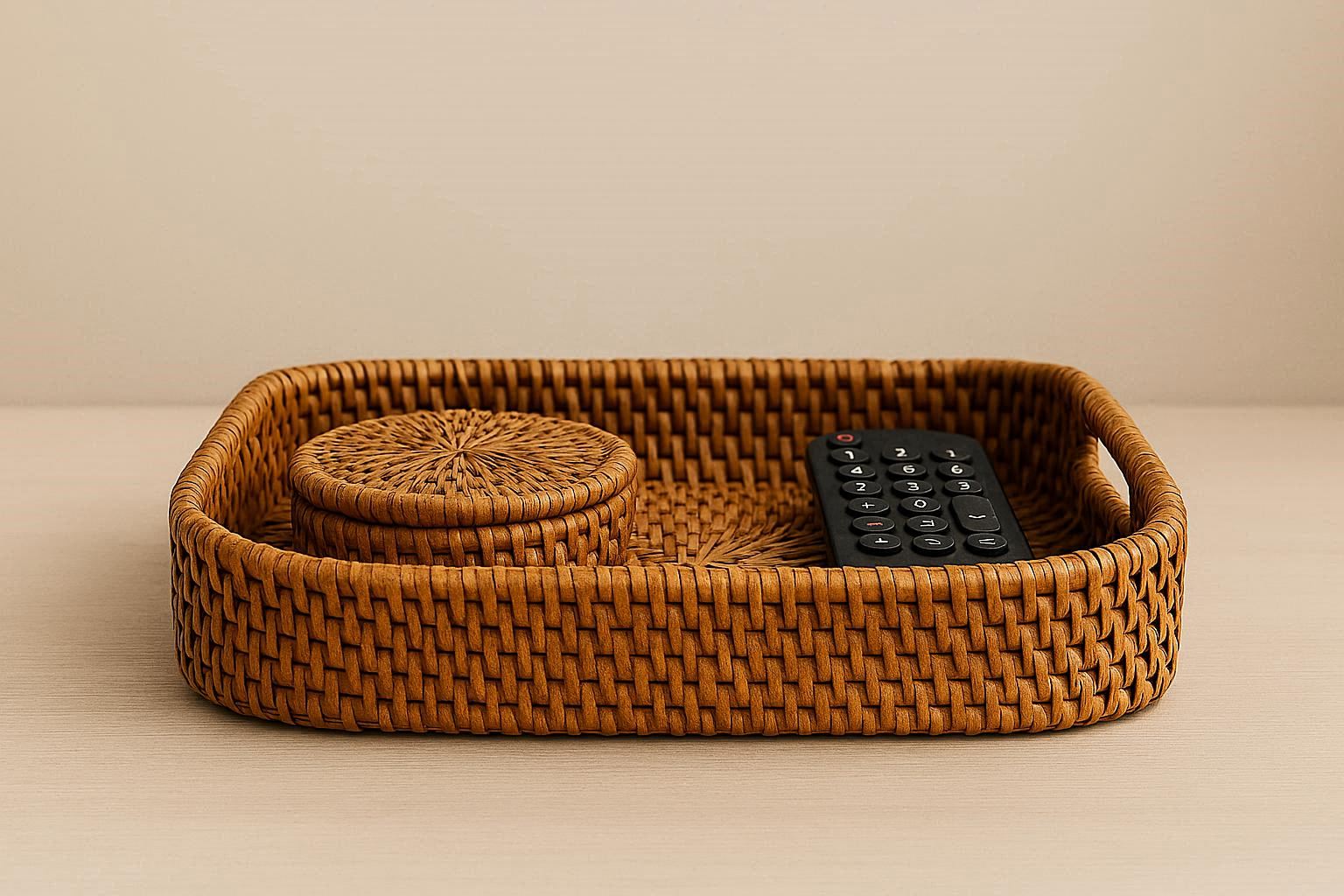 The rattan is carefully treated for durability and features a smooth, sanded finish to prevent splinters. It is lightweight yet sturdy enough to hold daily essentials. The natural material complements a variety of decor styles, from boho and beach house to farmhouse and Scandinavian minimalist.